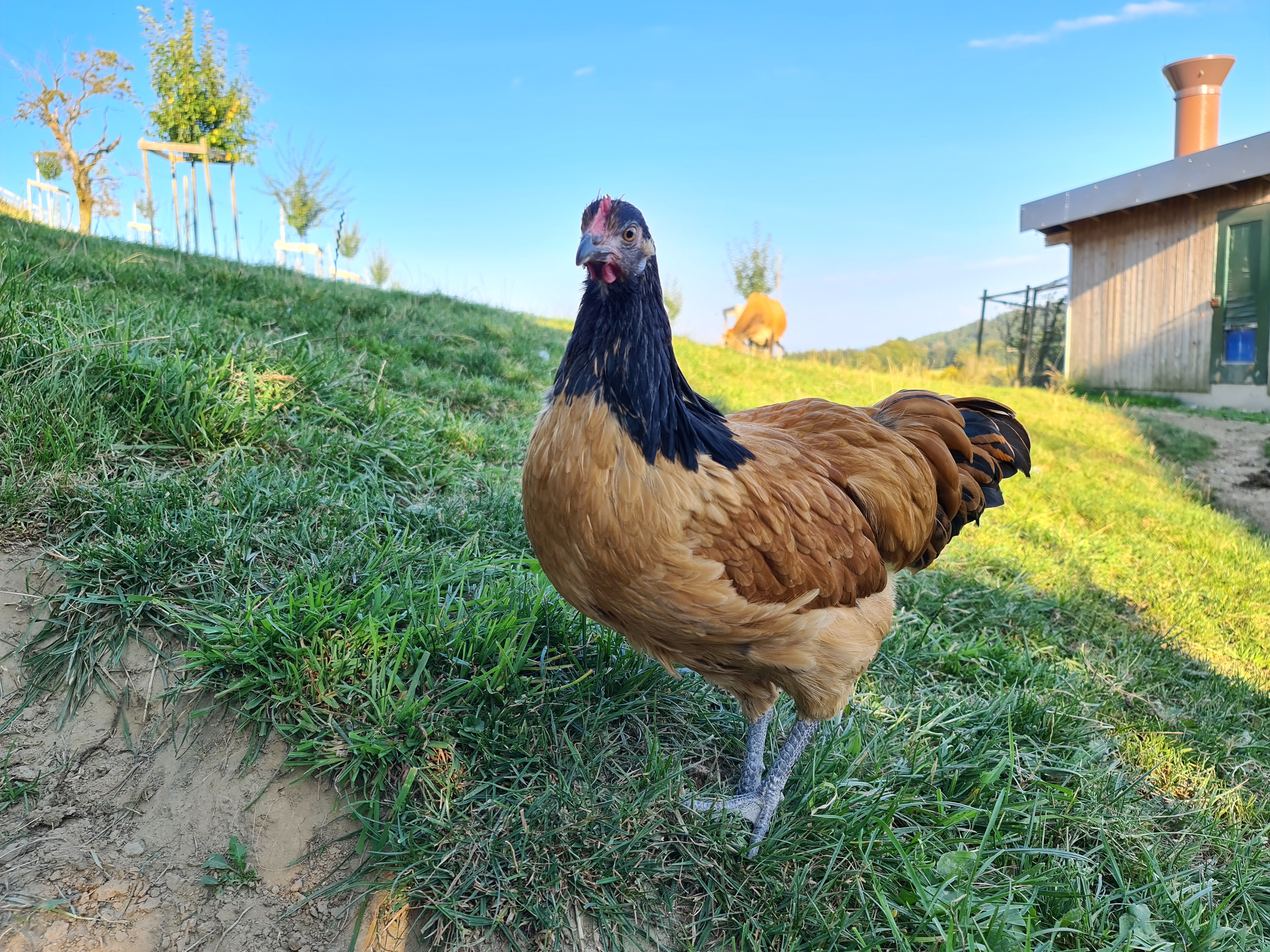 Unsere Hühner stammen alle aus eigener Brut. Uns liegt es am Herzen, dass die Bruderhähne der Hennen auf unserem Hof aufgezogen werden und anschliessend in einer regionalen Metzgerei geschlachtet werden. Auf Wunsch kann Fleisch direkt ab Hof bezogen werden.