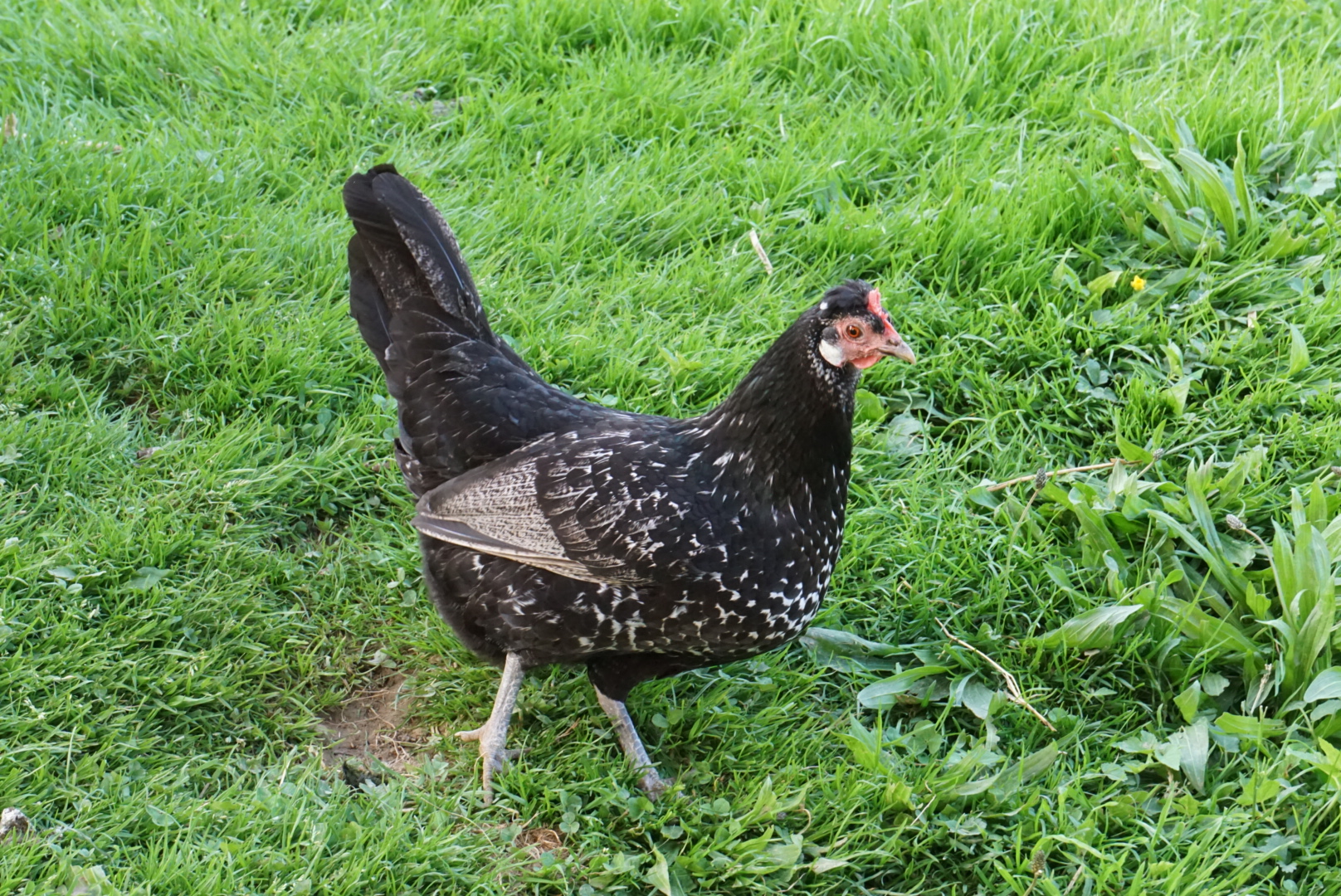 Klein aber fein! Bei uns leben 50 Hühner gemeinsam im Stall mit Auslauf. Die Hühner kommen täglich in Genuss des Freilaufs, wo sie Zugang zu frischem Gras und einem Sandbad haben. Auf unserem Hof leben Rassenhühner wie Appenzeller Spitzhauben, Vorwerk, Aaraucana, Marans und Seidenhühner. Die verschiedenen Rassen legen alle unterschiedlich farbige Eier, von braun über crème und grün bis weiss. Da wir auf Rassenhühner setzen, die eine längere Lege- und Lebensdauer haben, legen unsere Hühner mehrere Jahre lang Eier. Nach einem Jahr kommen die Hühner in die Mauser, in dieser Zeit erholen sie sich, legen keine Eier mehr und erneuern ihr Federkleid.